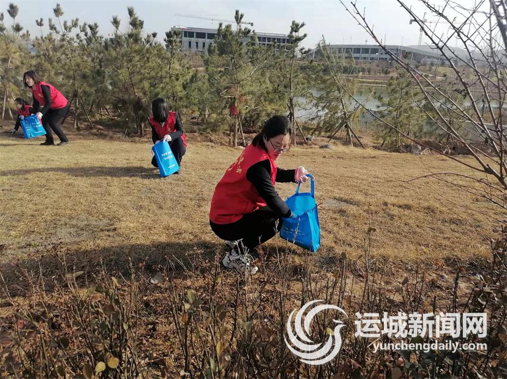 當日,夏縣城東、城西、城南、城北4個社區(qū)20余名女工作人員,身穿紅色志愿者馬甲,帶著垃圾袋和清潔工具,來到白沙河濕地公園,開展志愿服務活動。