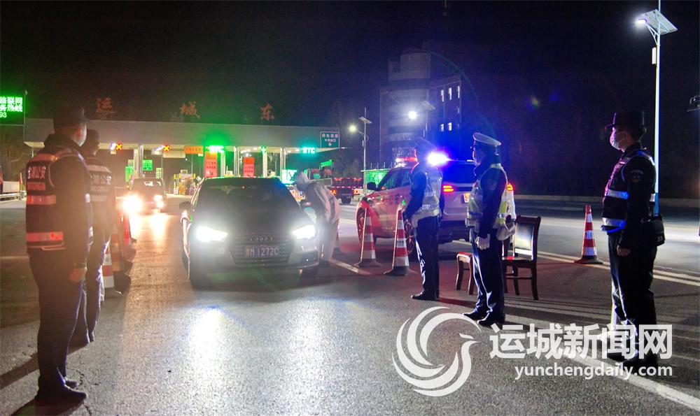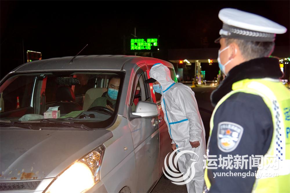 3月1日晚,在侯平高速運(yùn)城東收費(fèi)站疫情防控檢查點,工作人員在檢查進(jìn)入鹽湖區(qū)的人員行程卡。