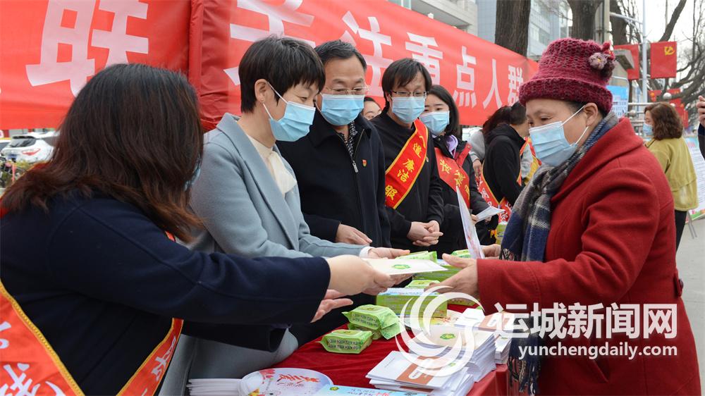 ▲3月3日,在芮城縣殘聯開展的全國“愛耳日”主題宣傳活動中,工作人員為居民發放預防聽力殘疾的相關資料。