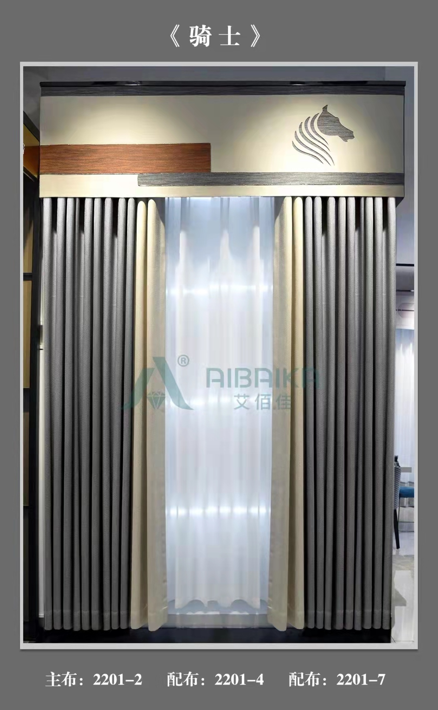 “騎士”款窗簾的簾布采用加密全遮光材質,面料自帶樹皮紋肌理,富有層次,視覺效果比較豐富。窗幔采用激光雕刻工藝,簡約流暢的馬頭造型躍然于上,寓意著馬到成功,日行千里。高級灰加米白的顏色搭配,營造出理性的質感。用橘色進行跳色搭配,經典的百搭色調在差異性的對比下彰顯出強勁的視覺沖力,時尚范兒十足。