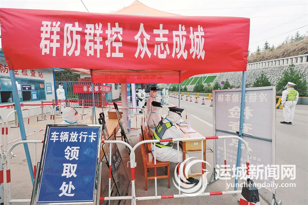 3月17日,芮城縣風陵渡黃河大橋疫情防控檢測站,執勤民警和防控人員堅守崗位,嚴格落實各項管控措施,對入運車輛、人員進行排查。