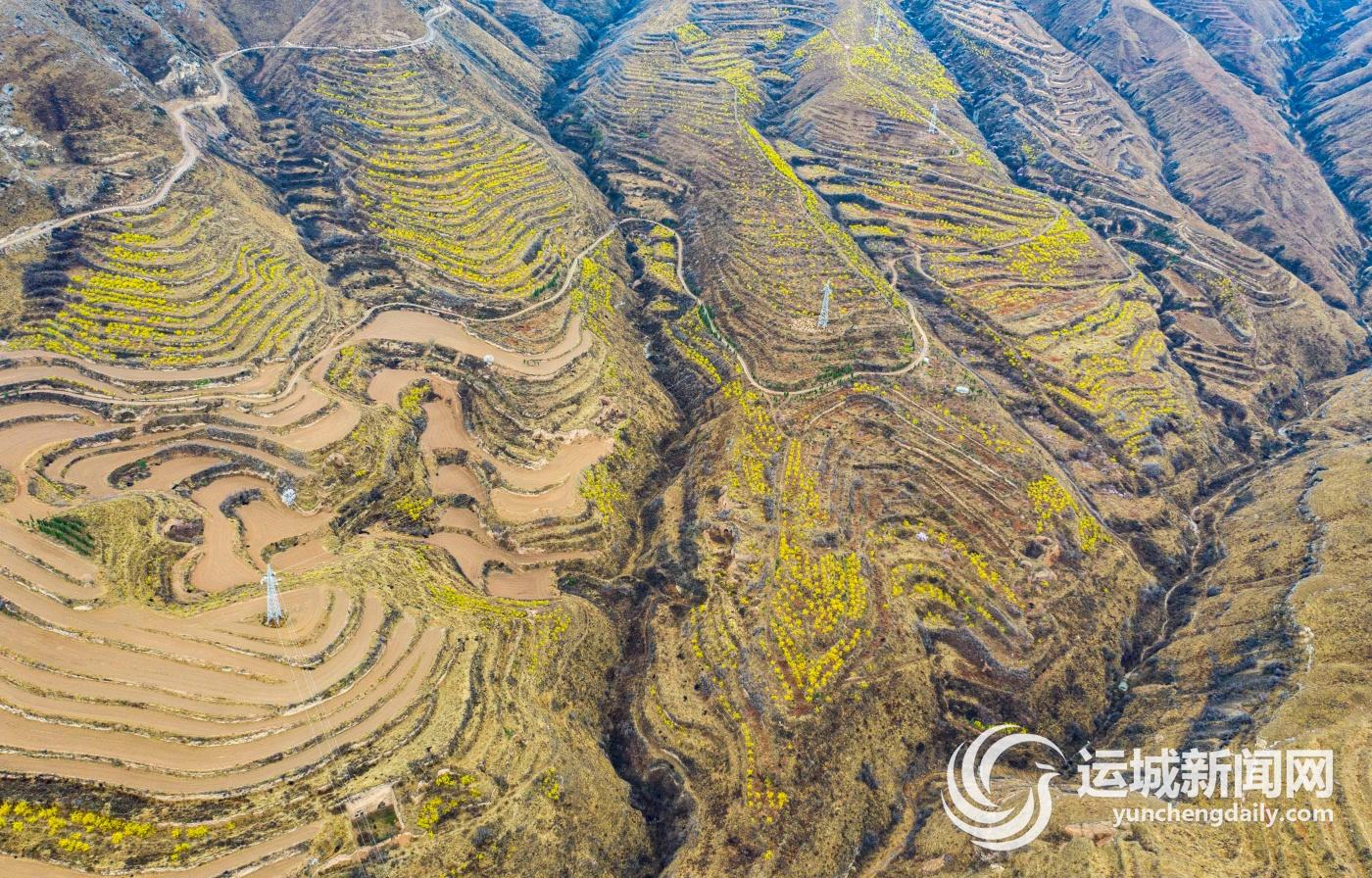 絳縣境內(nèi)中條山脈的梯田上,金燦燦的連翹花陸續(xù)綻放(3月20日攝)。