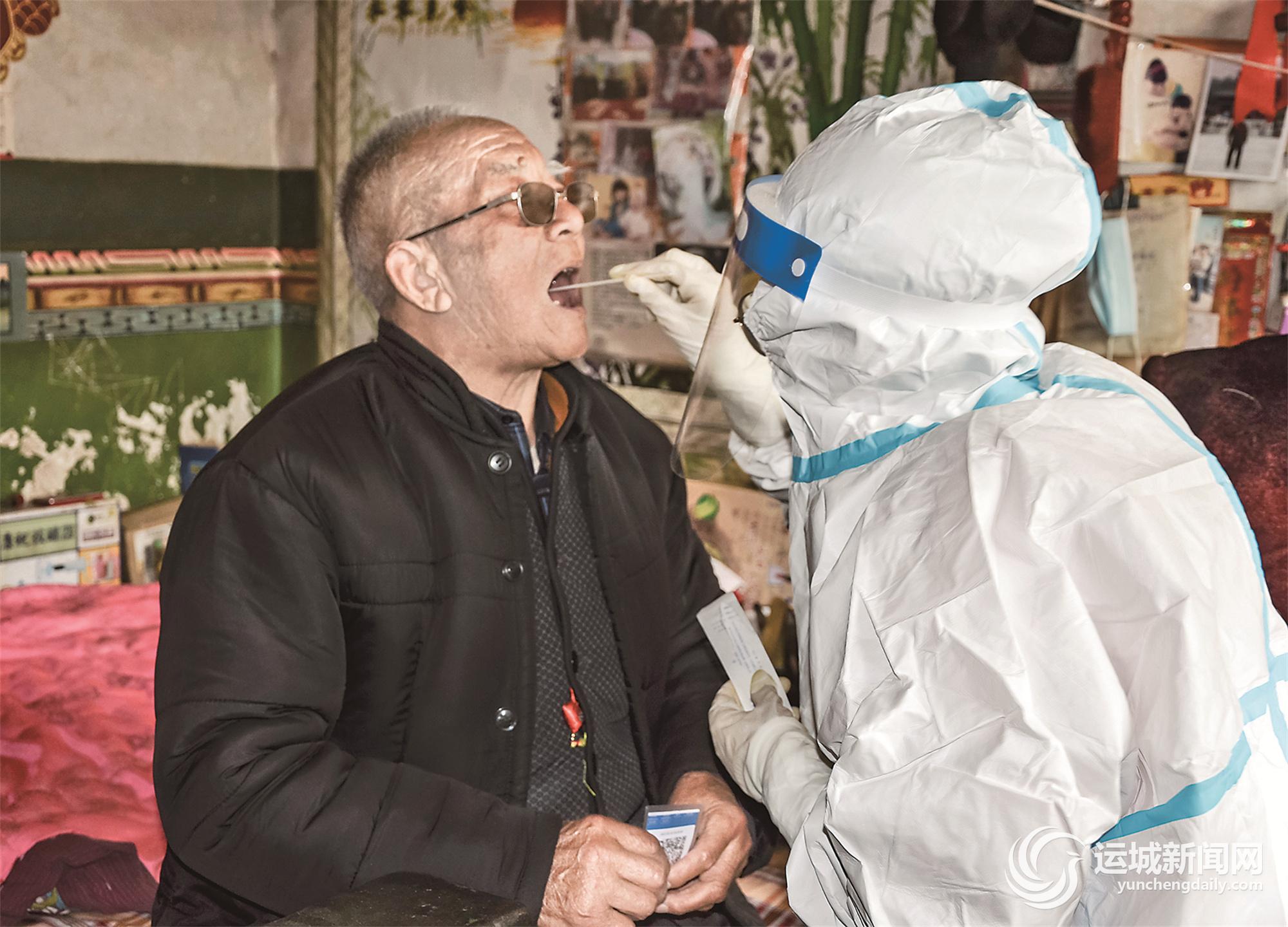 ▲3月28日,醫護人員在萬榮縣裴莊鎮西效和村入戶進行核酸檢測采樣。萬榮縣裴莊鎮在疫情防控中,對行動不便的老人、殘疾戶、慢性病者等人員,提供上門核酸檢測采樣服務,織密疫情防控網。