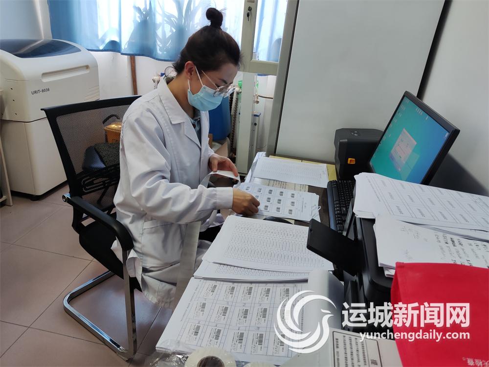 在鹽湖區北城街道社區衛生服務中心的角落里,有一個小單間,負責整個北城街道核酸歸納整理的檢測師王珊珊24小時在這兒值守。