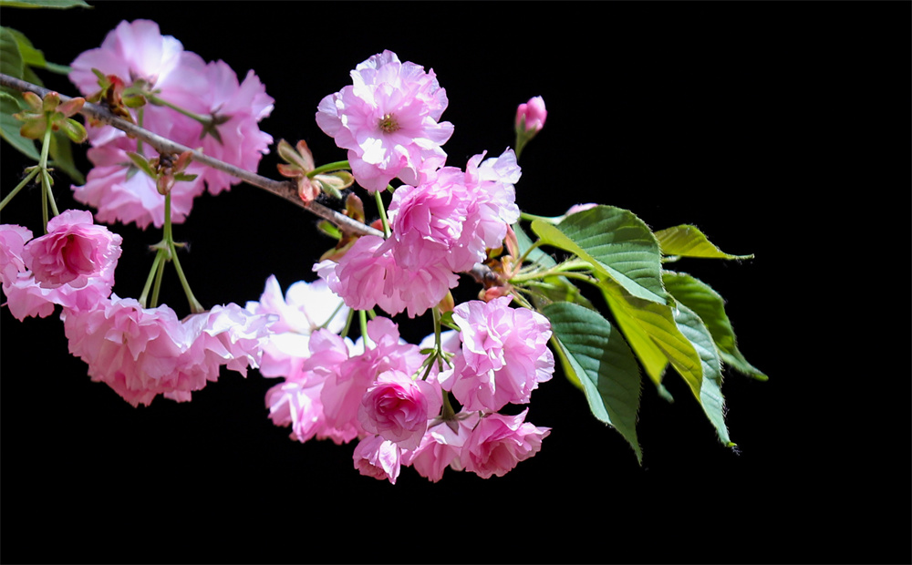 櫻花樹上,一團團,一簇簇,紅的像火,白的如云,粉的似霞,千般姿態,萬般嫵媚。