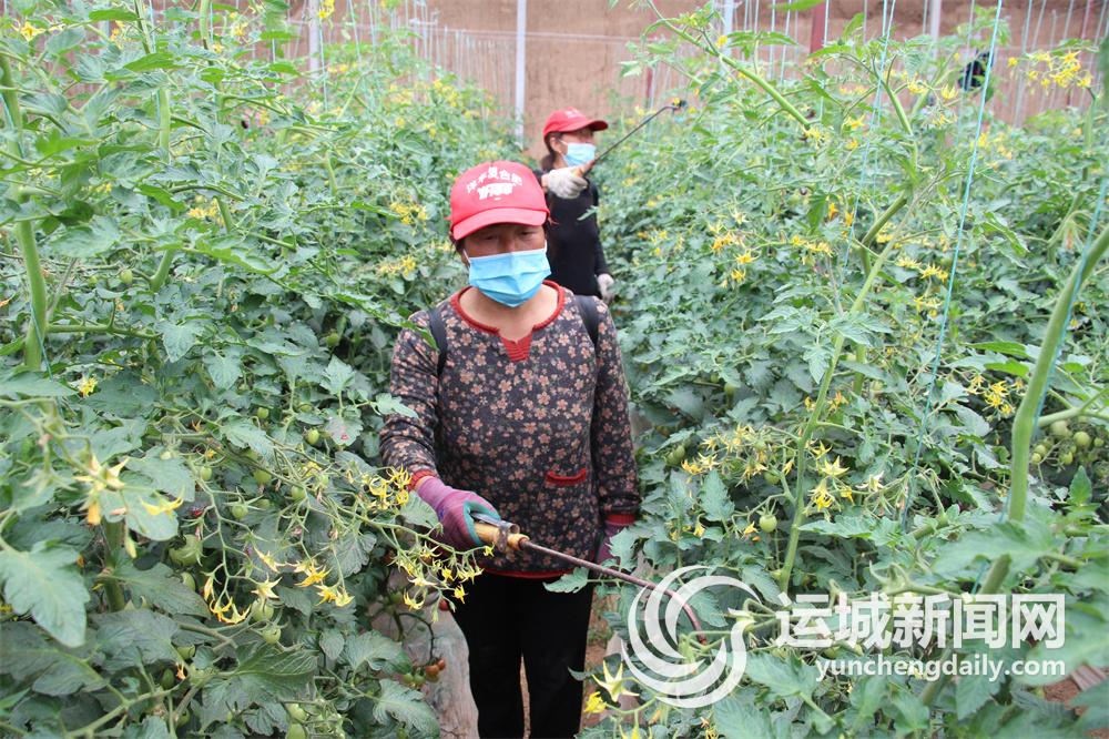 5月15日,聞喜縣后宮鄉陽莊有機蔬菜產業園里,村民為西紅柿噴施葉面肥。