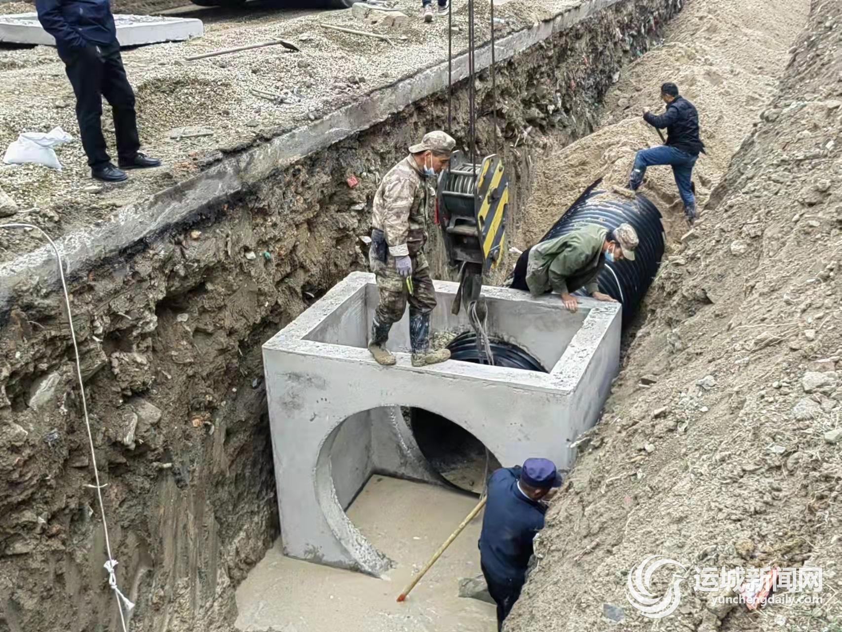 為確保5月份張留莊國考斷面水質檢測達標,永濟市住建局組織市政公用服務中心專業人員召開現場辦公會進行分析研判,廢棄涑水街至振興街段的原有出水管道,重新鋪設一道DN1200鋼帶增強PE管道,工程概算約200萬元。