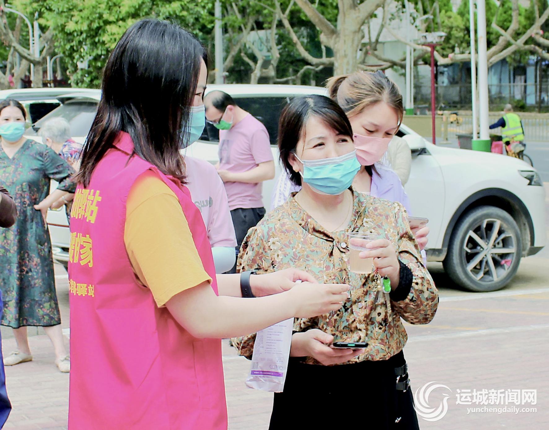 運城晚報訊(記者 祁克寧 通訊員 郭英峰)5月24日,在永濟市南城黨群服務驛站核酸采樣點,該站黨員志愿者正組織市民排隊等候核酸采樣。他們有的布設隔離帶,有的為未戴口罩的市民發放口罩,有的給行動不便的市民提供板凳,還有的向做完核酸的市民發放雪糕。