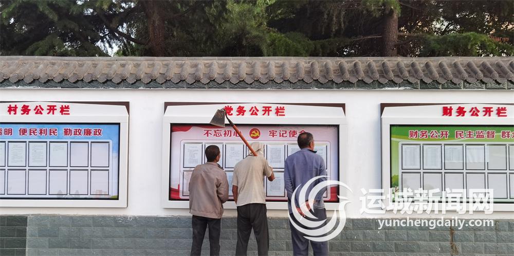 6月1日,芮城縣陌南鎮(zhèn)東窯村幾名下地回來的村民在村委會(huì)剛剛設(shè)立的農(nóng)村“三務(wù)”公開欄查看各種公開賬單。
