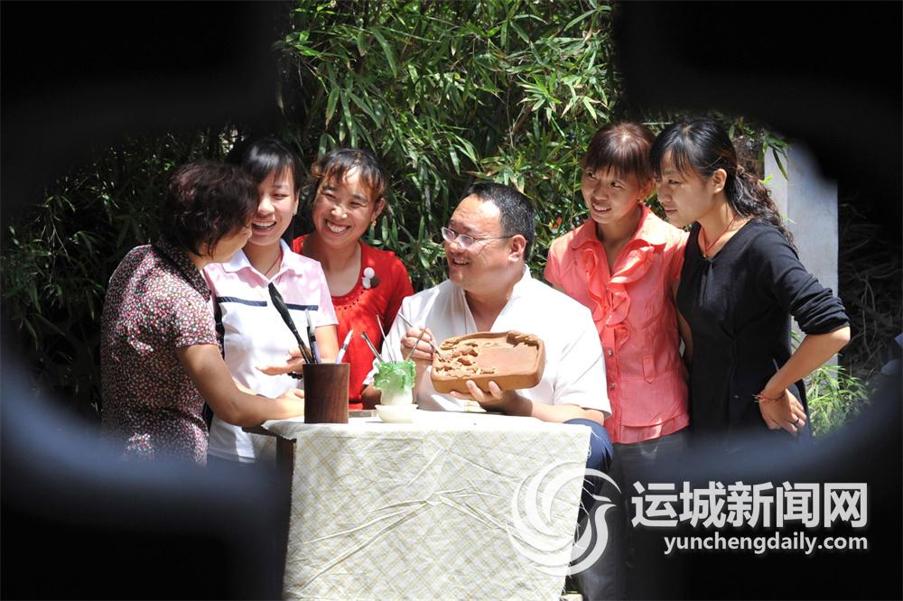 國家級非遺傳承人藺濤在向徒弟教授絳州澄泥硯制作工藝。近年來,藺濤及其團(tuán)隊創(chuàng)新了國家級非物質(zhì)文化遺產(chǎn)在新時期保護(hù)、傳承與發(fā)展的新模式。