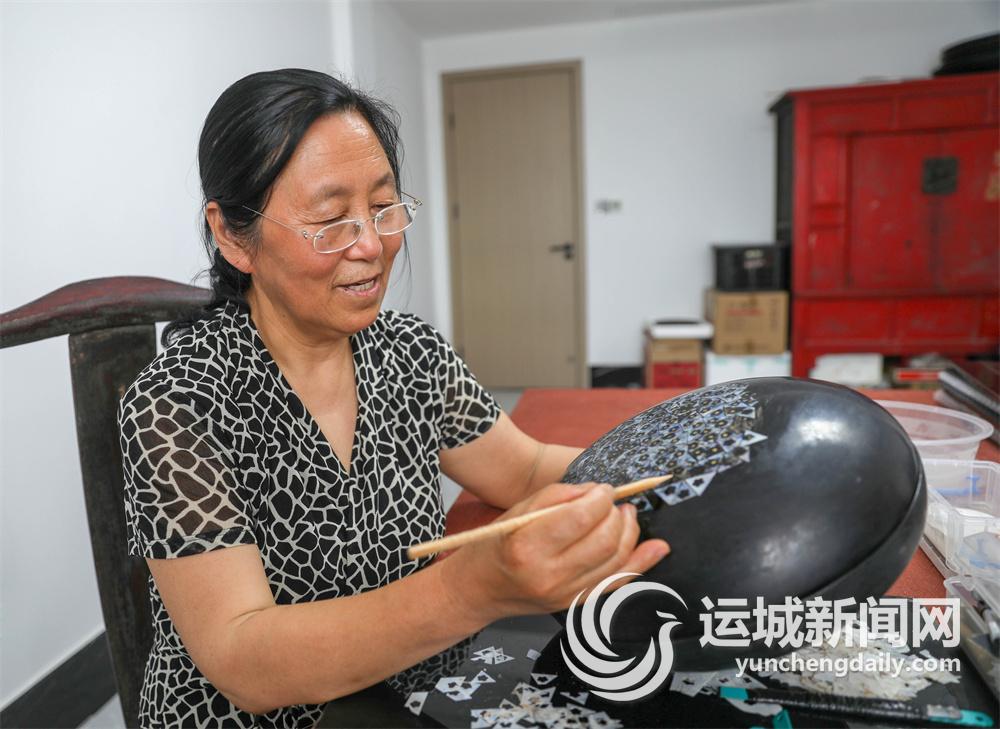 國家級非遺傳承人李愛珍在制作螺鈿漆器作品。螺鈿漆器采用天然大漆、螺鈿等原料,經(jīng)過數(shù)十道工序加工而成,2014年被錄入國家級非物質(zhì)文化遺產(chǎn)名錄。