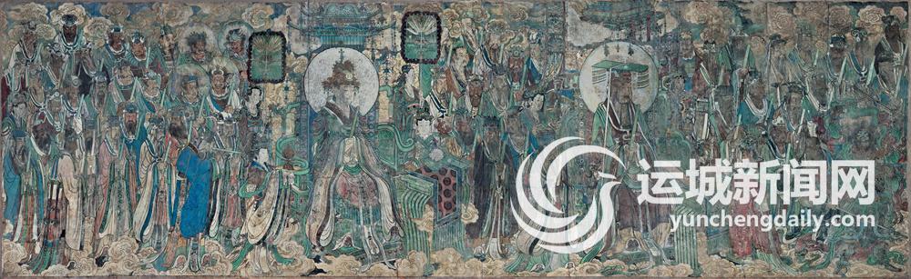 永樂宮壁畫《朝元圖》(局部)。該壁畫創(chuàng)作完成于公元1325年,是永樂宮壁畫的精華,代表了元代壁畫的最高成就,也是迄今為止我國古代最大的人物畫。