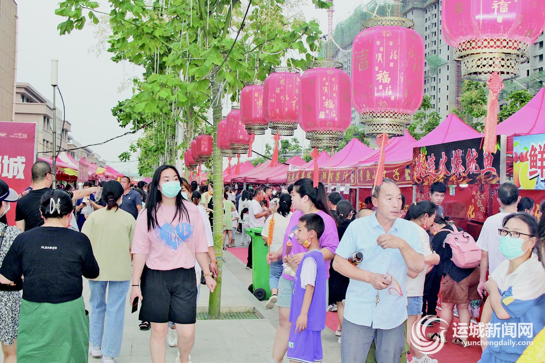 日前,聞喜縣舉辦非遺民俗文化美食節,以加快市場復蘇,激發消費潛能。圖為6月11日,市民在美食節上游玩消費。 特約攝影 溫徐旺 劉 佳