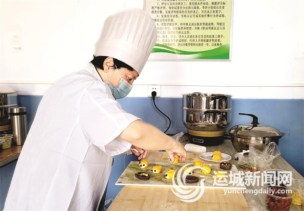 “這次比賽大家的作品各有特點,我從評委的角度給幾點建議。大家要注意,比賽中盤子里所呈現的東西,必須是可食用的,而且作品造型要更加精致些……希望各位選手積累經驗,在今后的比賽中取得更好的成績。”6月9日上午,中式面點項目實操比賽結束后,評委對選手們的作品進行了點評。