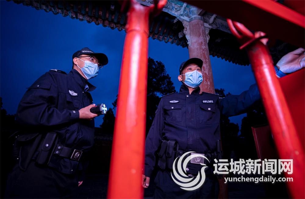 夜幕降臨,常平警務室的民輔警吃過晚飯后,一路前往關帝廟進行例行文物巡檢。此時,在距關帝廟3公里的高速解州疫情防控卡口,社東警務室的民輔警已替換下在該卡口執勤了12小時民輔警,開始了當晚的疫情防控值守工作。警燈亮起,那束光成為鄉鎮夜晚安全的守護符號。