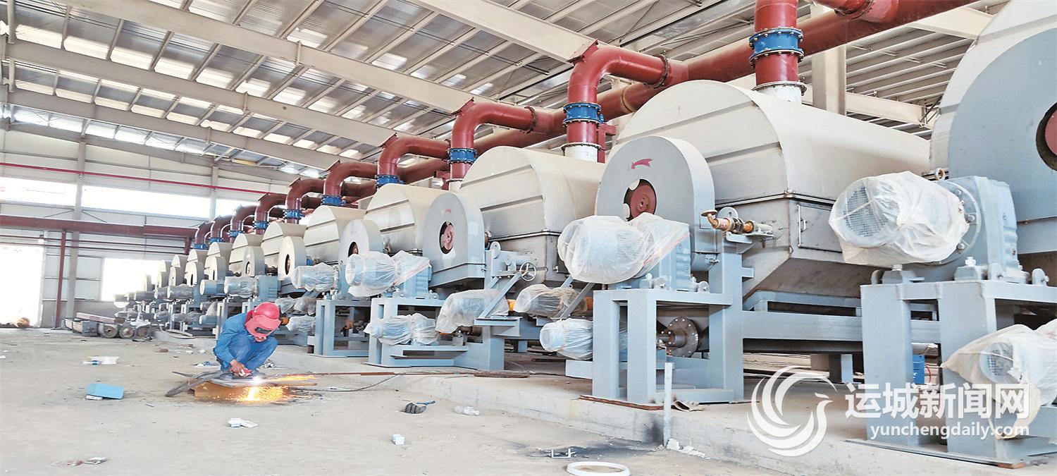 河津市華輝杰能源有限公司6萬噸/年高效活性炭項目工地,施工場景熱火朝天。 記者 陳永年 攝