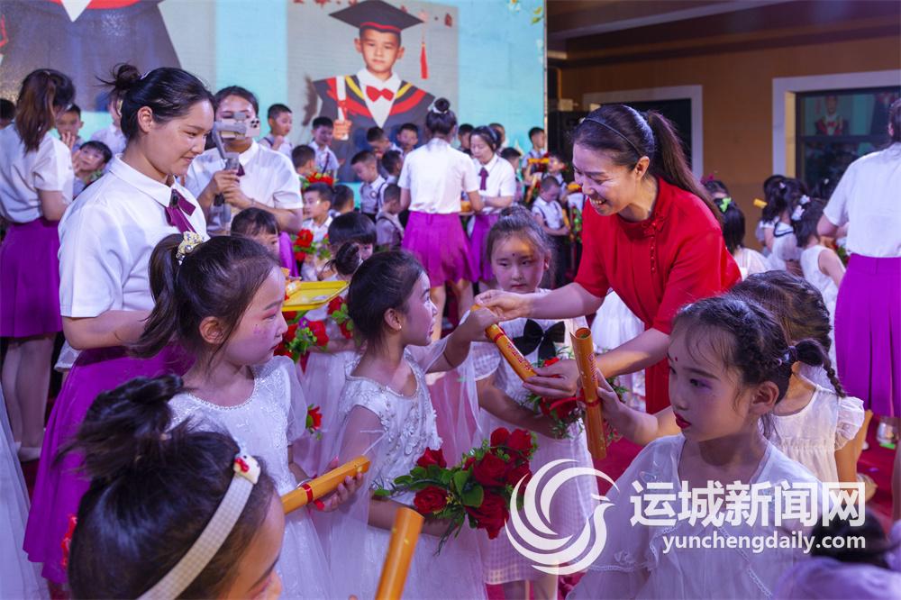 ▲6月29日,鹽湖區第二實驗幼兒園的老師為孩子們頒發畢業證書。