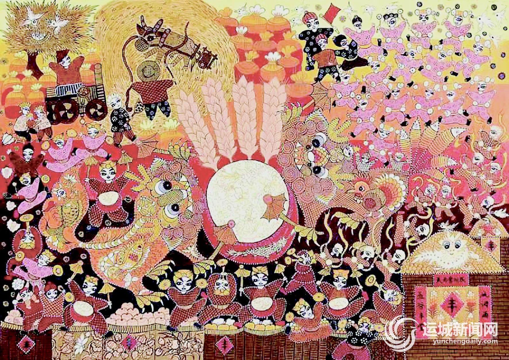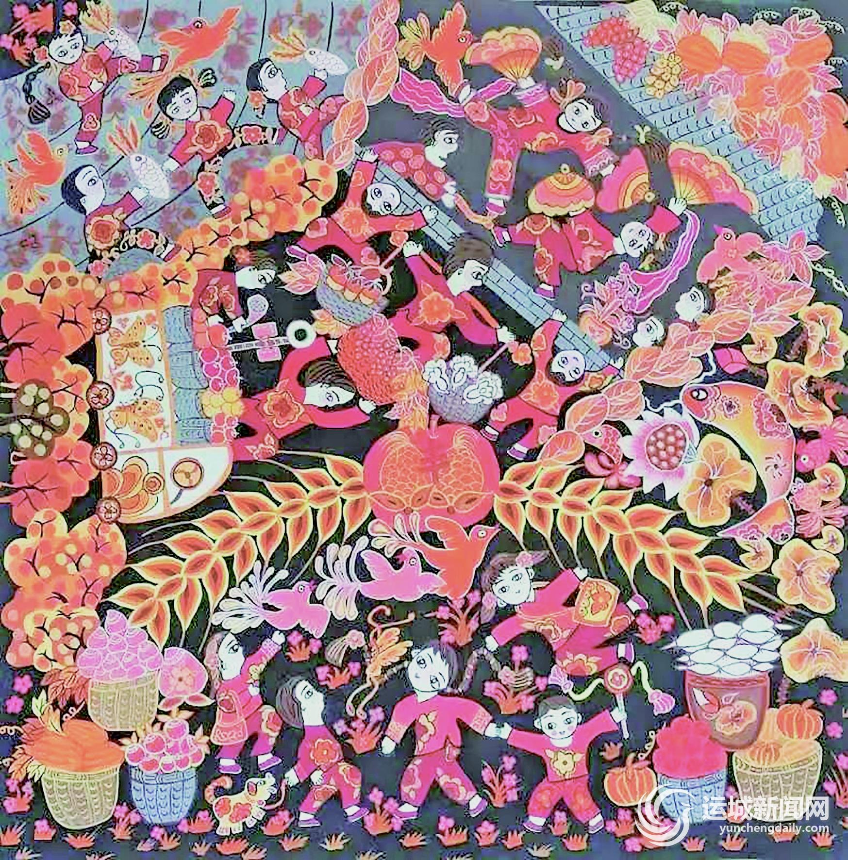 其中,山西省有6幅農(nóng)民畫優(yōu)秀作品入展,運城市占3幅。這些作品分別是王淑紅的《福簾簾》,李建肖的《慶豐收》,薛希玲的《美在豐收里》。