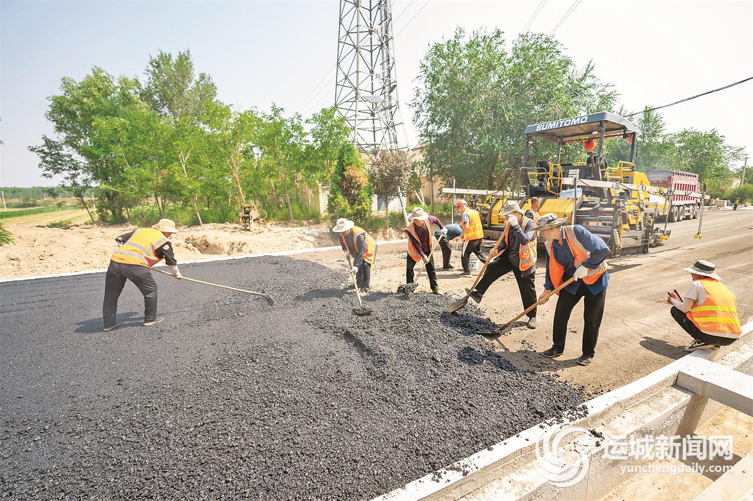6月30日,在稷山縣稷峰鎮苑曲村,該縣環城生態旅游觀光道道路建設工程第三標段項目工地,工人正在進行路面鋪油作業。該項目屬于山西省沿黃旅游公路規劃項目,全長近40公里,總投資3.2億元,建設任務和投資規模較大,前期協調存在各種困難。