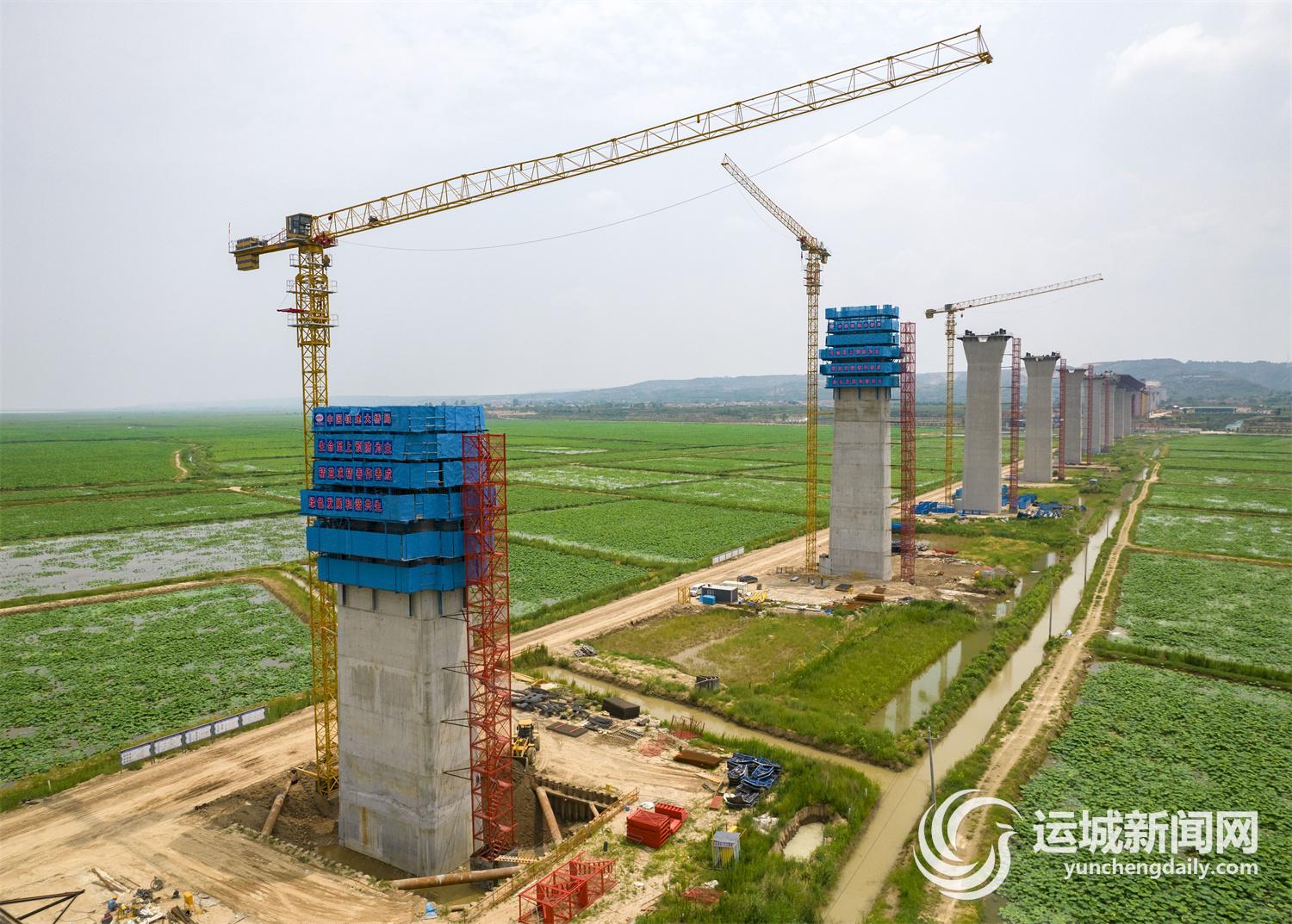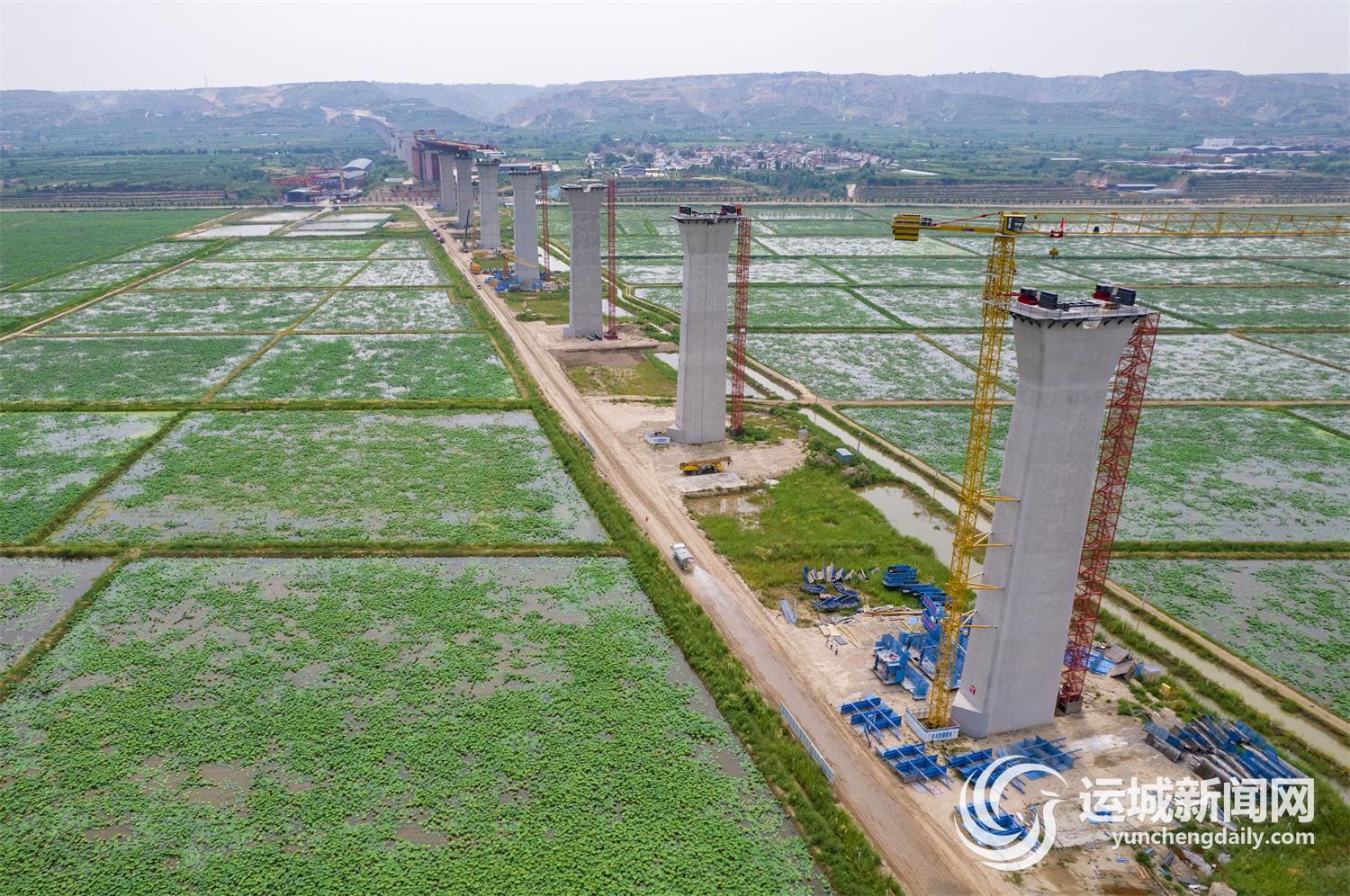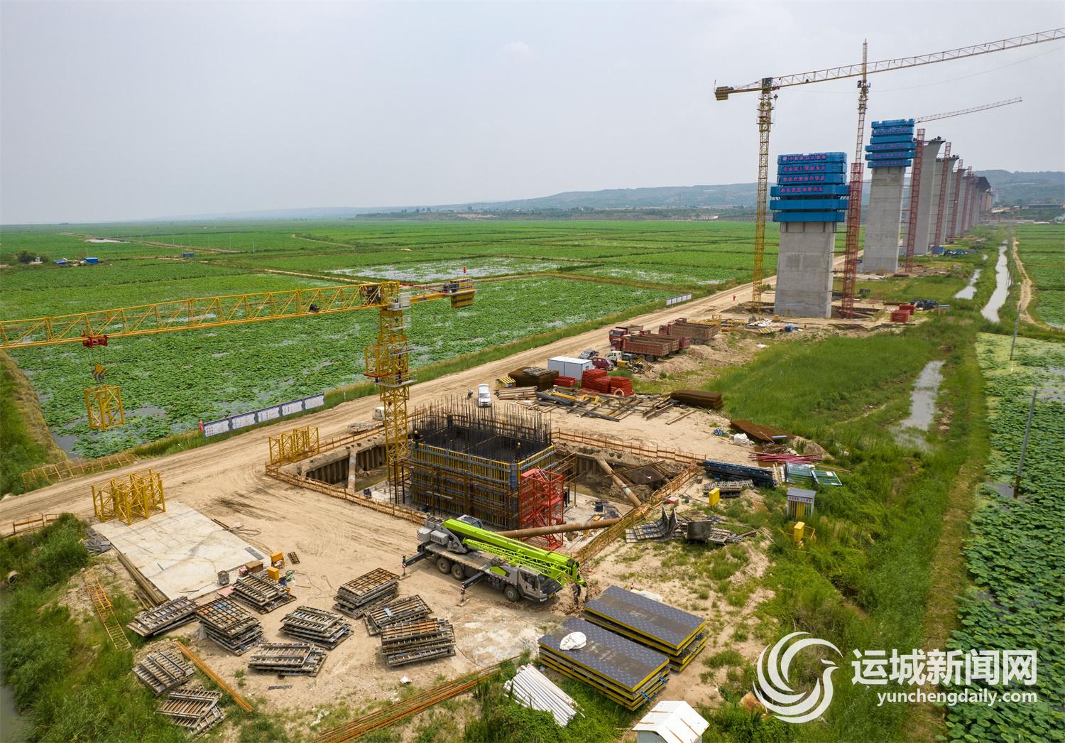 7月5日,施工人員在臨猗黃河大橋及引線工程項目工地加緊施工。 據(jù)了解,臨猗縣跨黃河大橋及引線工程是山西省“三縱十二橫十二環(huán)”的重要組成部分,也是連接晉陜兩省的12座公路橋梁中投資規(guī)模最大、橋梁長度最長的黃河公路大橋。建成后將對于形成山西省開放性高速公路網(wǎng)絡(luò)、改善省際交通環(huán)境等有著重要意義。記者 常 奇 攝