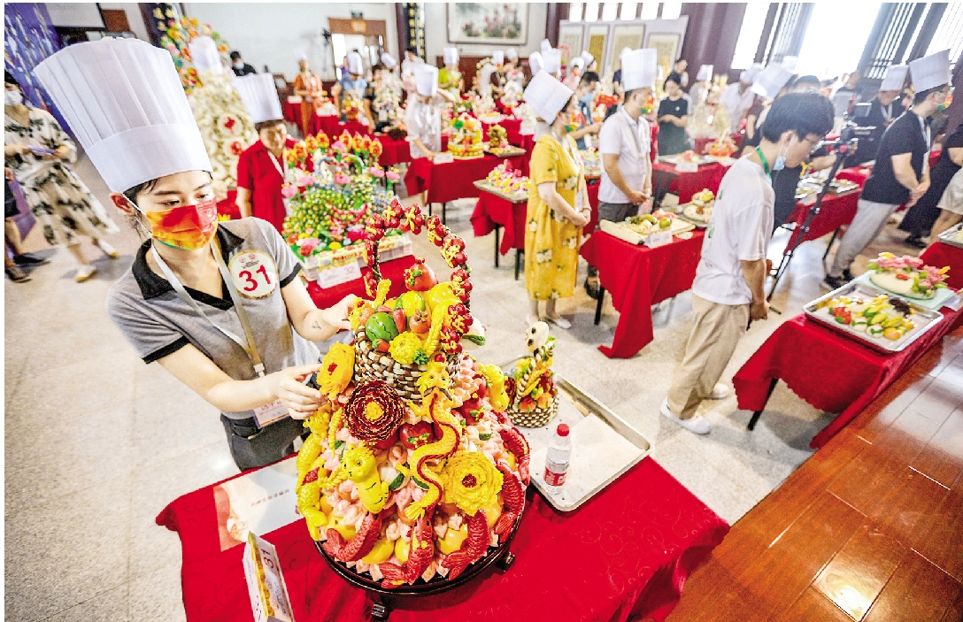 小小一團面,經過和面、發面、蒸制、捏花、插花、上色等工序,結合揉、捏、搓、按、點、切、剪、刻、挑等技法,一件件造型生動形象、色彩鮮艷奪目、民俗氣息濃郁、制作精巧細膩的面花作品經過選手們的精心雕琢,脫手而成……7月16日上午,隨著與會嘉賓共同按下啟動鍵,為期兩天的2022大國農匠·面花制作大賽決賽拉開帷幕,來自北京、河北、河南、陜西、山東、山西等省(市)的40名選手經過層層選拔,會師決賽。