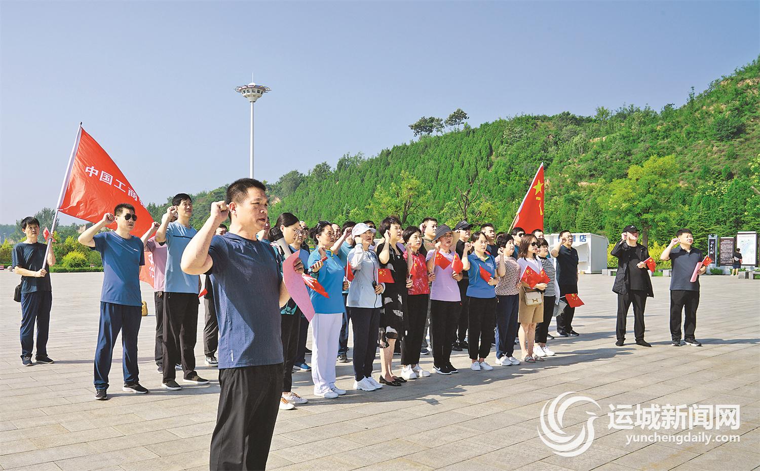 7月29日,中國工商銀行運城分行的退役軍人職工在重溫軍人誓詞。
