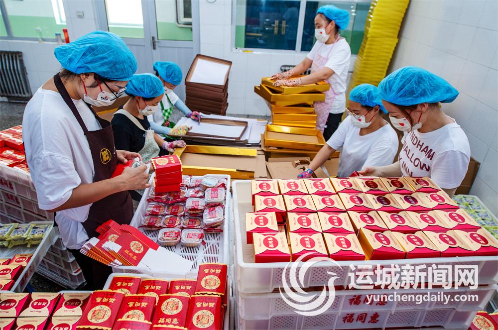8月1日,運城市福同惠食品有限公司員工在包裝月餅。