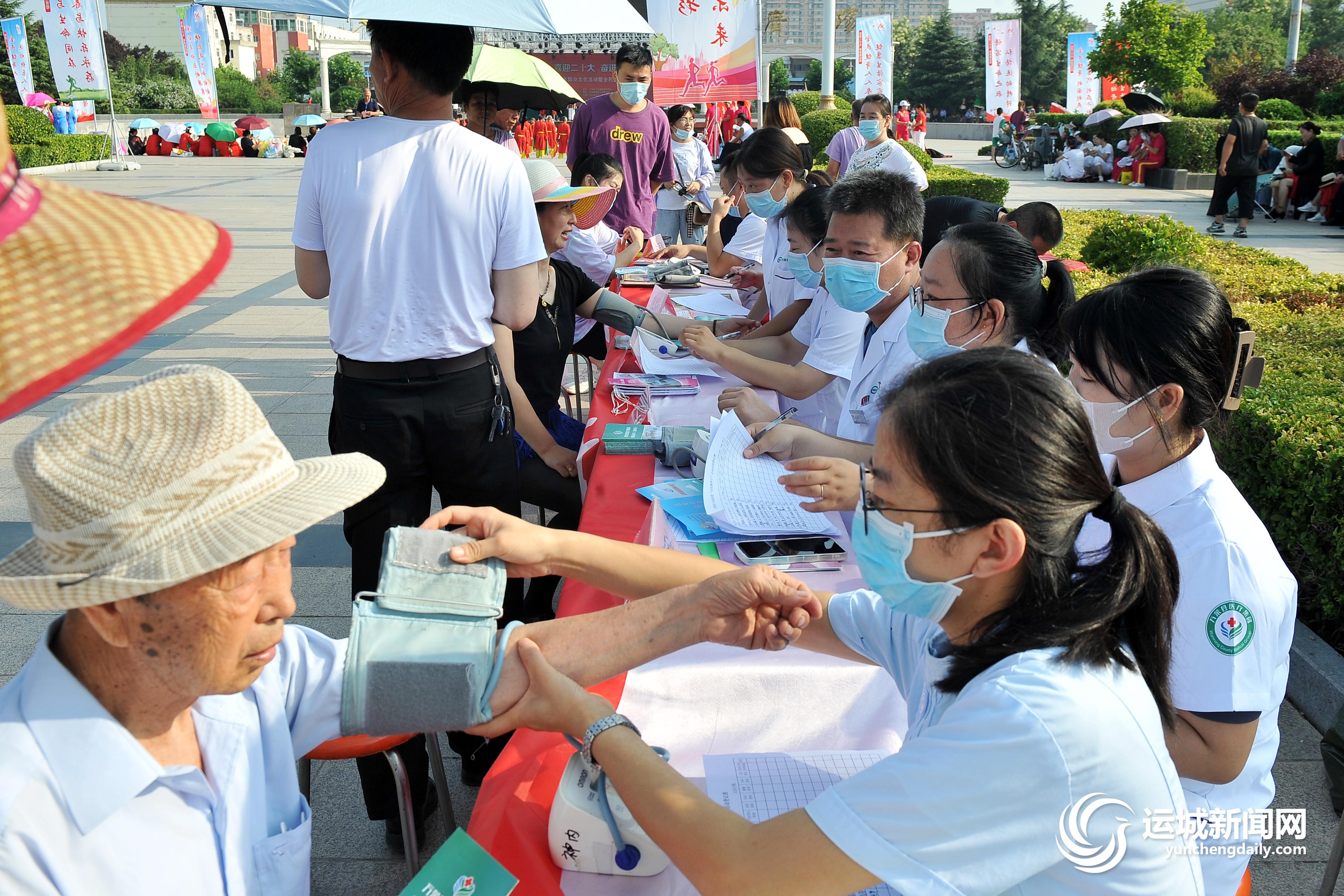 活動現場,醫護人員為前來義診的群眾提供測量血壓、健康咨詢等服務,引導他們養成健康的生活方式。