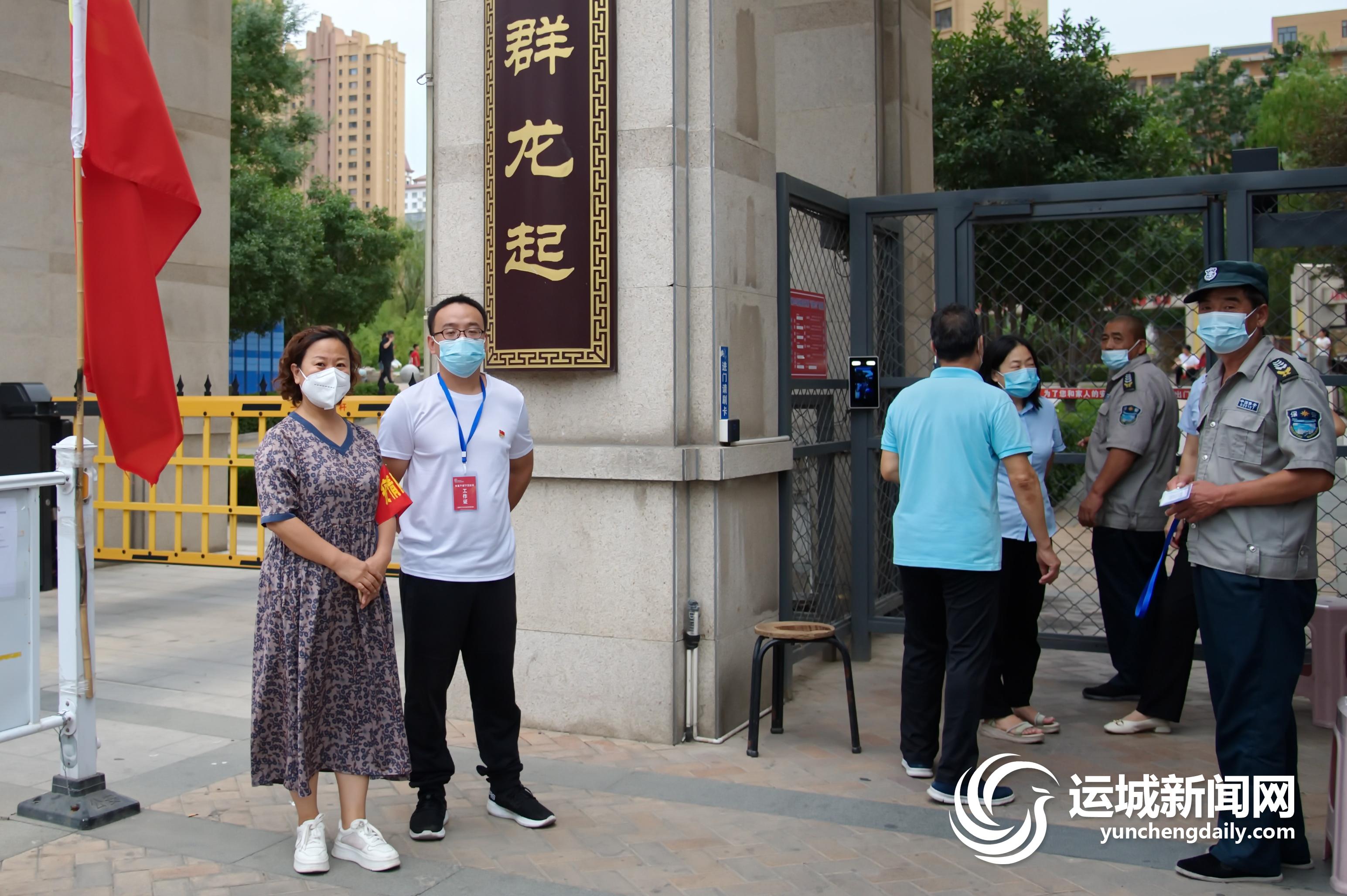 8月22日,在市區(qū)信合名都小區(qū)北門,山西關鋁集團有限公司一名下沉干部(左一)查驗進入小區(qū)人員“三碼”。