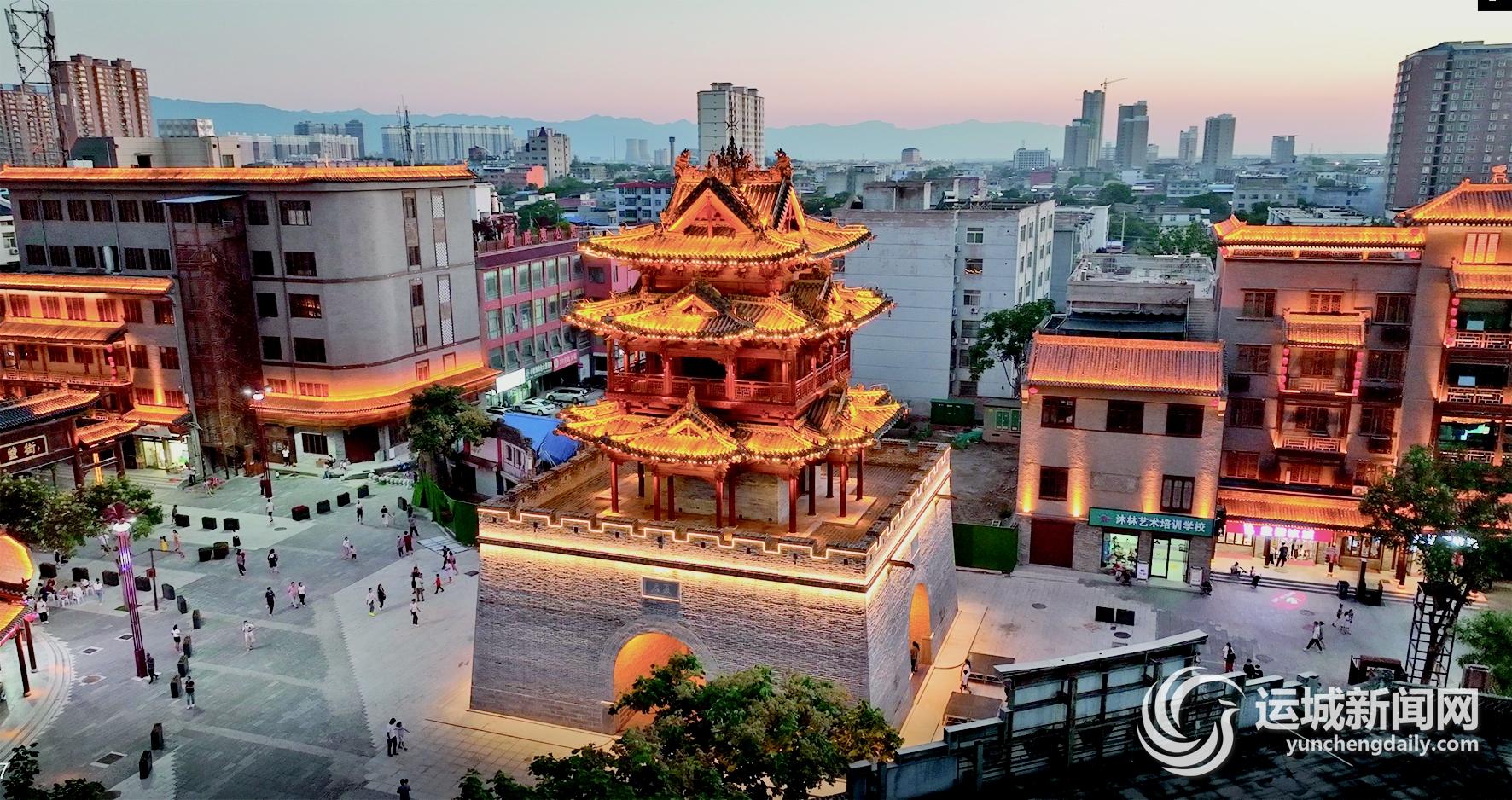 四時(shí)晨昏,日落日出,重建后的鐘樓與鼓樓東西相望,再次肩并肩,守護(hù)著河?xùn)|人世代依傍的綠水青山。