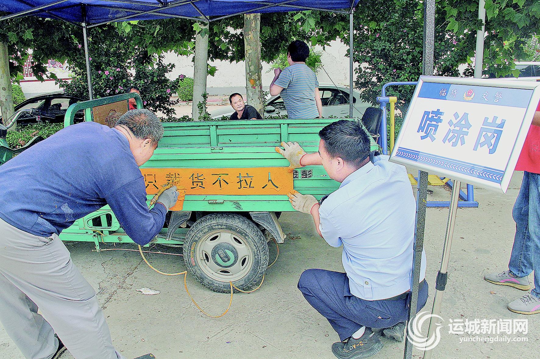 據悉,為持續推進事故預防“減量控大”工作深入開展,鞏固農村道路交通安全“固本強基”成果,連日來,臨猗交警大隊組織專班警力,深入農村地區,對各村農用三輪車所有人逐一進行信息登記、備案,并免費在車身噴涂“只載貨不拉人”警示標語(左圖),車尾噴涂“鄉(鎮)+村+編號”的車輛識別號碼,納入“農安通”管理系統,實現“一車一人一號一檔”管理模式,進一步規范、強化農用三輪車管理。
