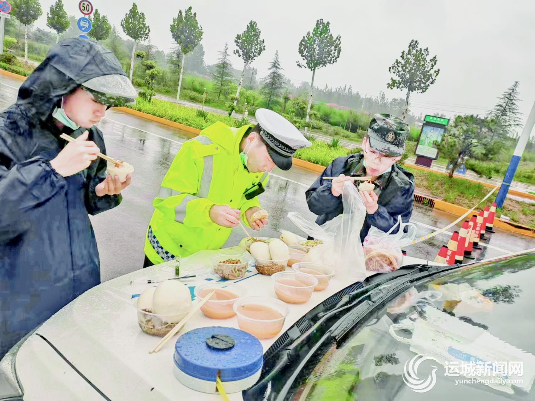 8月31日18時許,夏縣交警大隊的民警在吃工作餐。