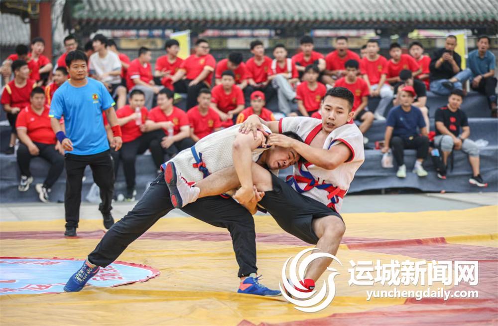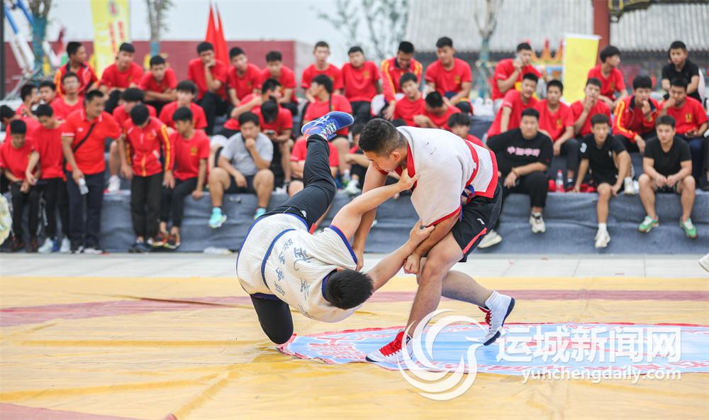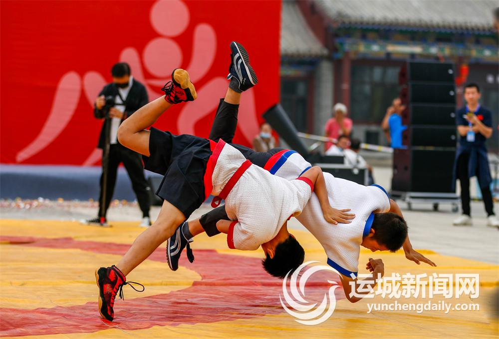 ▲9月17日,山西省第九屆跤壇爭霸賽(運城站)暨第十二屆“武圣杯”跤王爭霸賽,在鹽湖區常平關帝廟文化廣場盛大舉行。精彩的跤壇大戰,為開幕在即的山西省第八次旅游發展大會暨第33屆關公文化旅游節增溫添彩。 記者 杜磊 攝