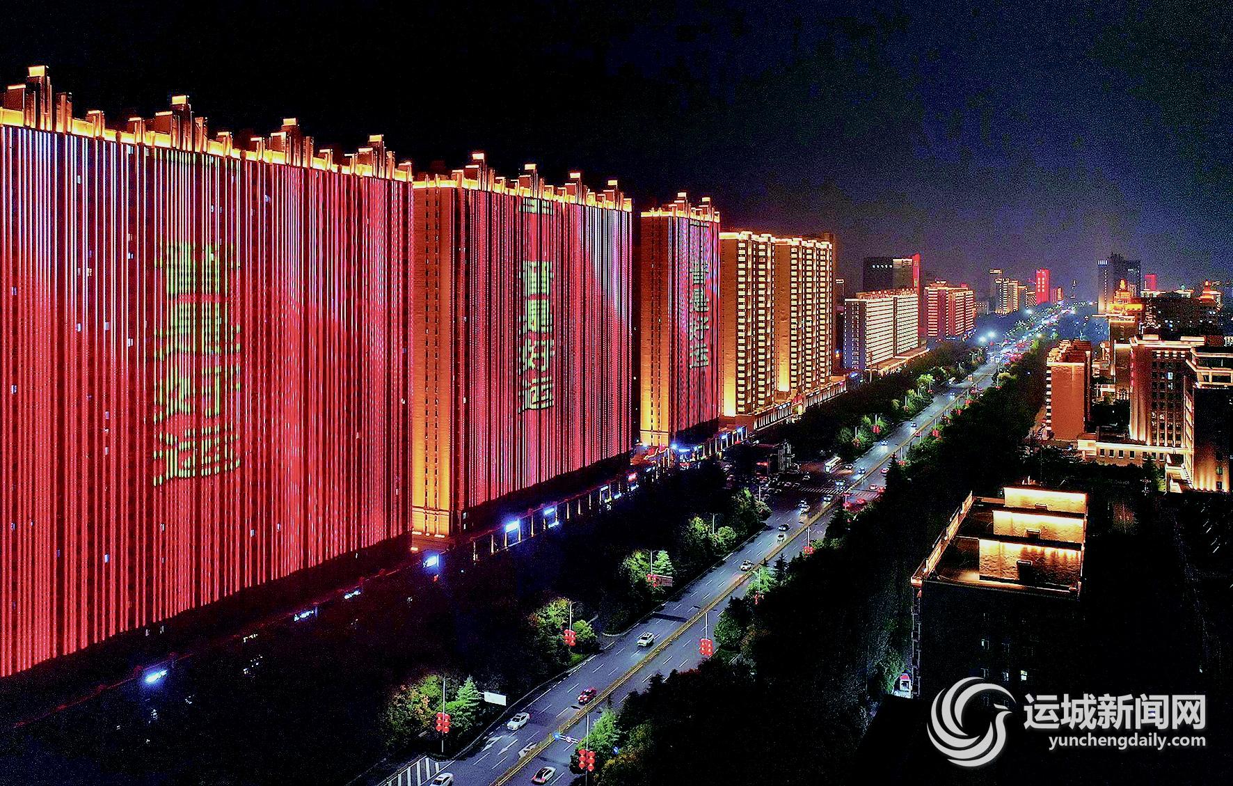 9月20日,中心城區樓體亮化展現出“華夏之源 厚重山西”“華夏之根 忠義之源”“關公故里 晉是好運”“關公故里 好運之城”等字樣和歷史人物等畫面的主題燈光秀,喜迎山西省第八屆旅游發展大會,向廣大賓客展示我市優秀的歷史文化。記者 金玉敏 攝