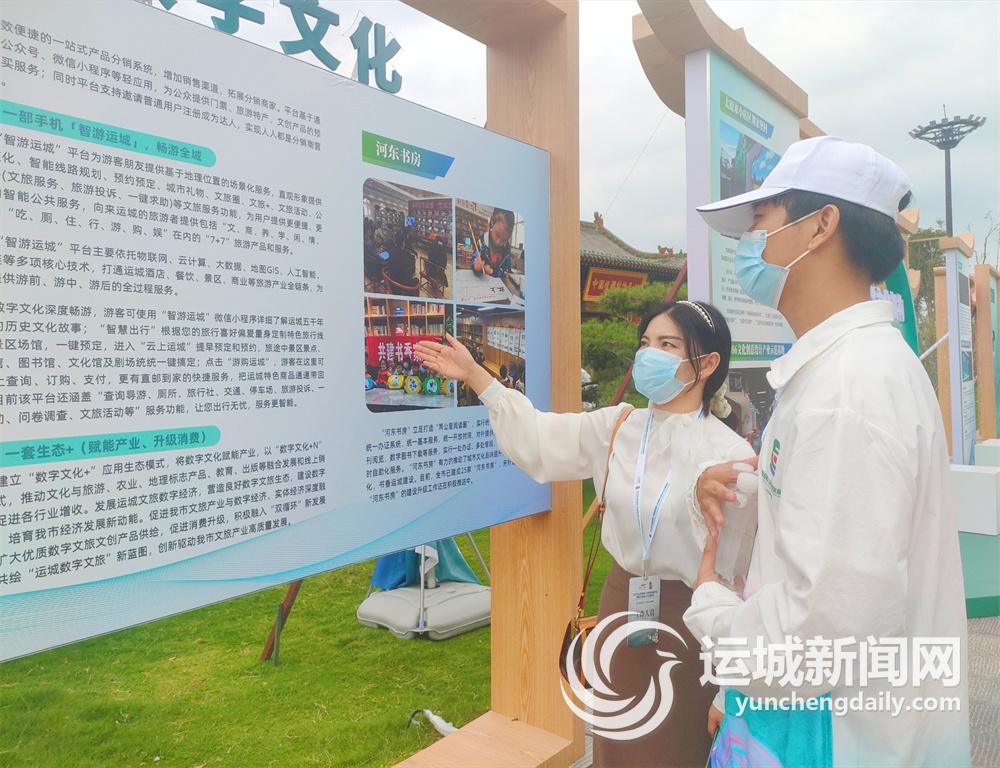 運城學(xué)院帶隊老師向志愿者講解河?xùn)|文化