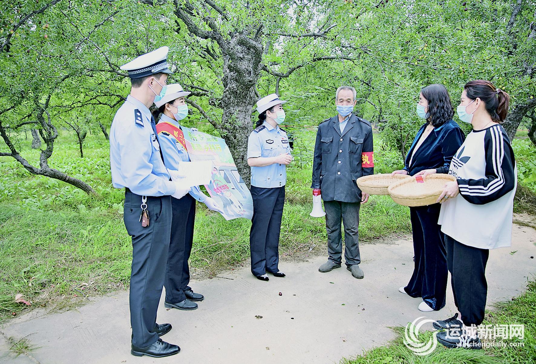 在另一旁的棗園內,交通安全宣講隊走進田間地頭進行交通安全宣講,發放“一盔一帶”交通安全宣傳資料,為務農的農民朋友開展交通安全宣傳教育。此外,宣講民警通過宣傳車播放了交通安全警示片,向村民講解事故成因和防范方法,引導村民知危險、會避險,自覺養成良好的遵規守法習慣,增強交通安全意識。