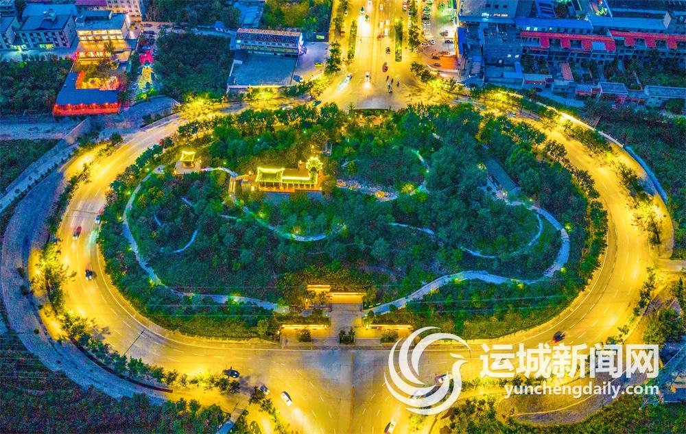 9月19日傍晚,位于中心城區學苑路鹽湖城小區南面的鹽湖園燈火璀璨、美不勝收。特約攝影 姚中吉 攝