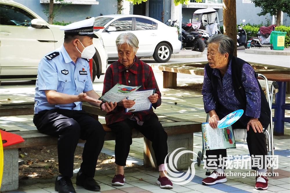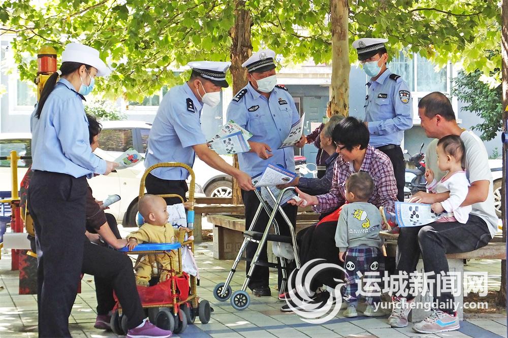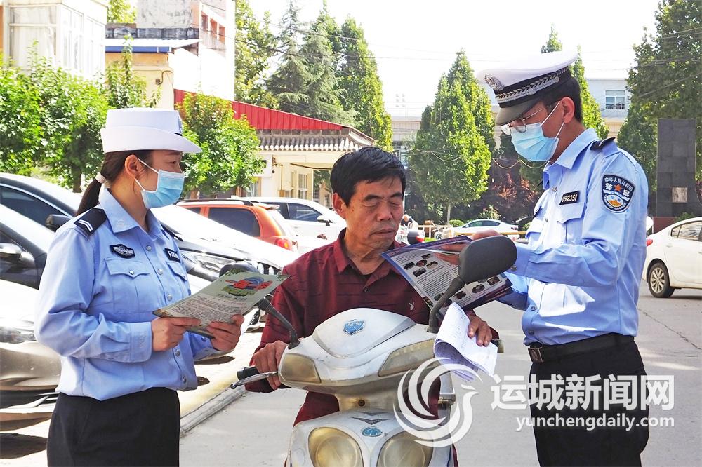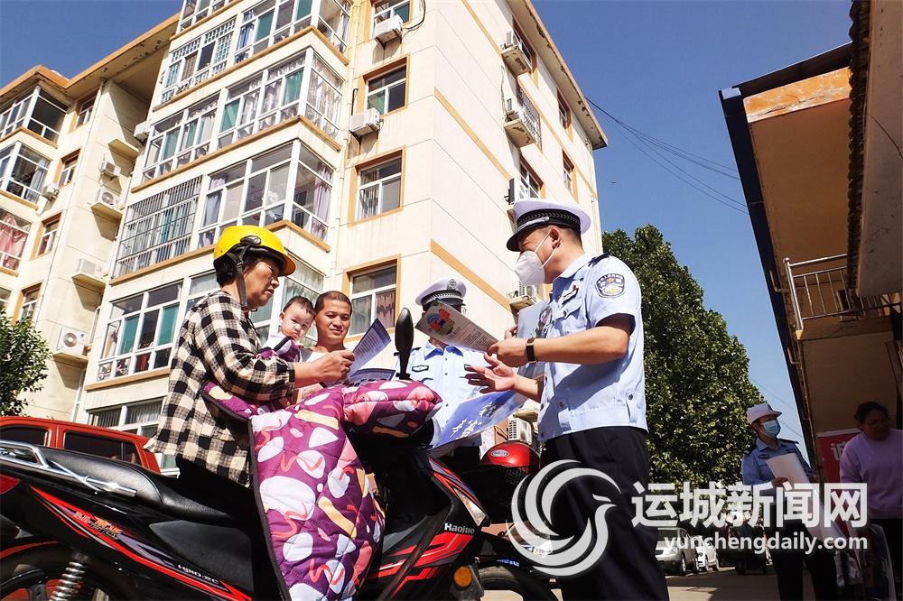 日前,新絳縣公安局交警大隊黨員民警走進學府城社區,宣講、發放“一盔一帶數你最帥”等交通安全法規和宣傳畫冊,現場接受群眾咨詢求助。 高新生 攝