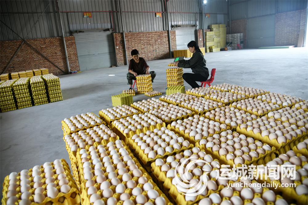 10月7日,聞喜縣河底鎮海俊養殖專業合作社工作人員在收獲雞蛋。