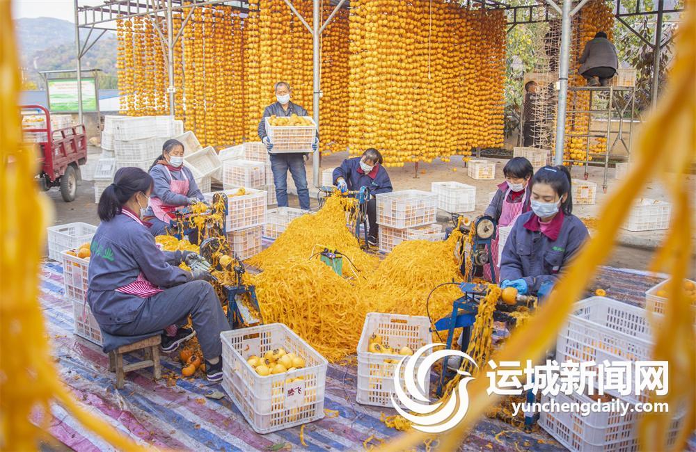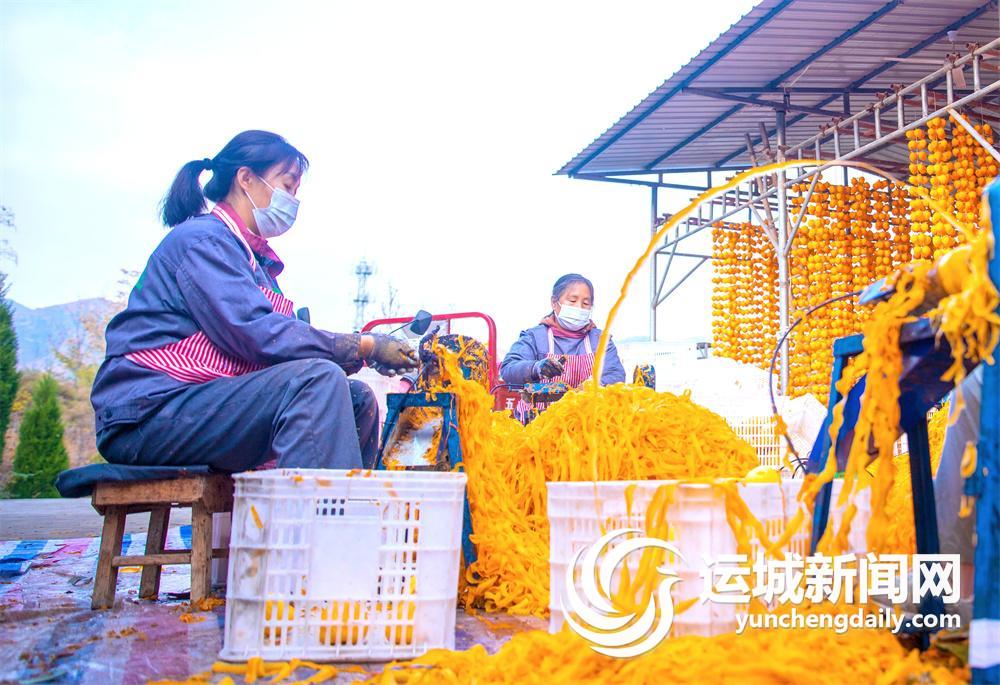 10月26日,夏縣展鵬農業開發有限公司員工在削柿子。