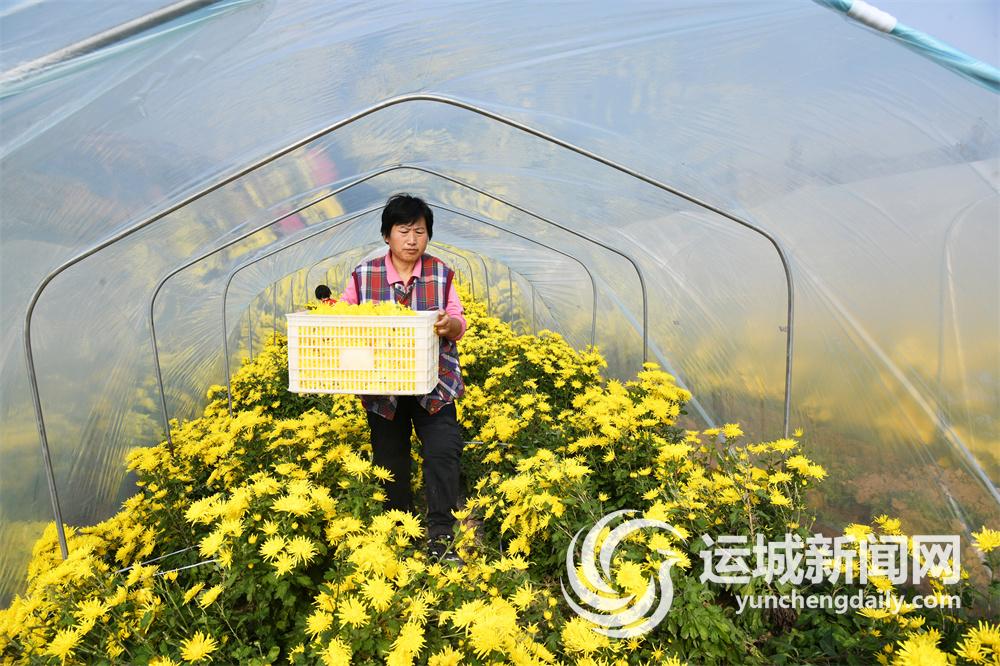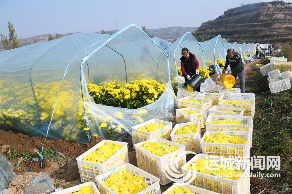 11月2日,在聞喜縣桐城鎮上白土村,山西新桐農業有限公司的員工在采摘菊花。