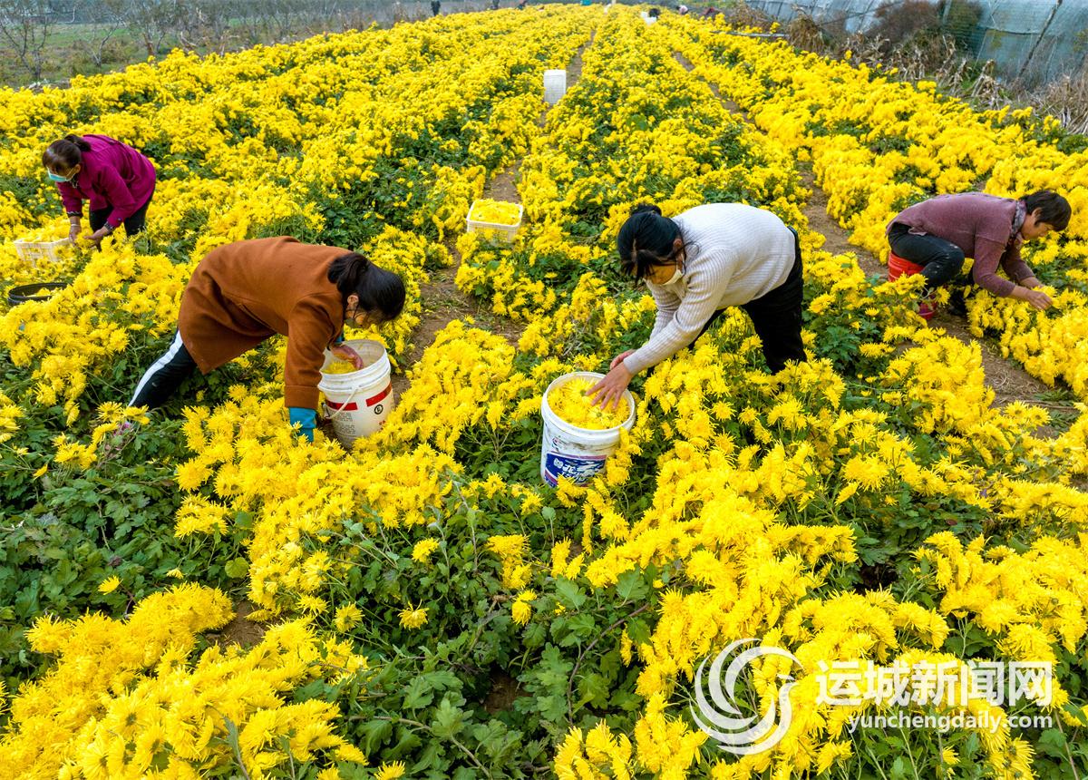 初冬時節,芮城縣菊花地里一派繁忙景象,菊農抓住晴朗天氣,加緊采收菊花。