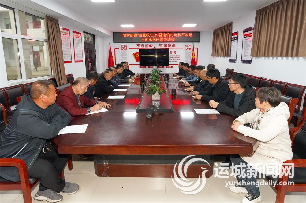 河津市陽村街道連伯村與和平農場土地承包問題協調會正在“清化收”工作專班組織下順利開展。