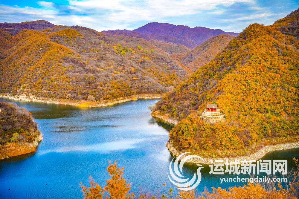 11月12日,平陸縣大河廟一帶群山層林盡染,在藍(lán)天白云映襯下展現(xiàn)出如夢(mèng)如畫般的景象。 記者 陳方斌 攝