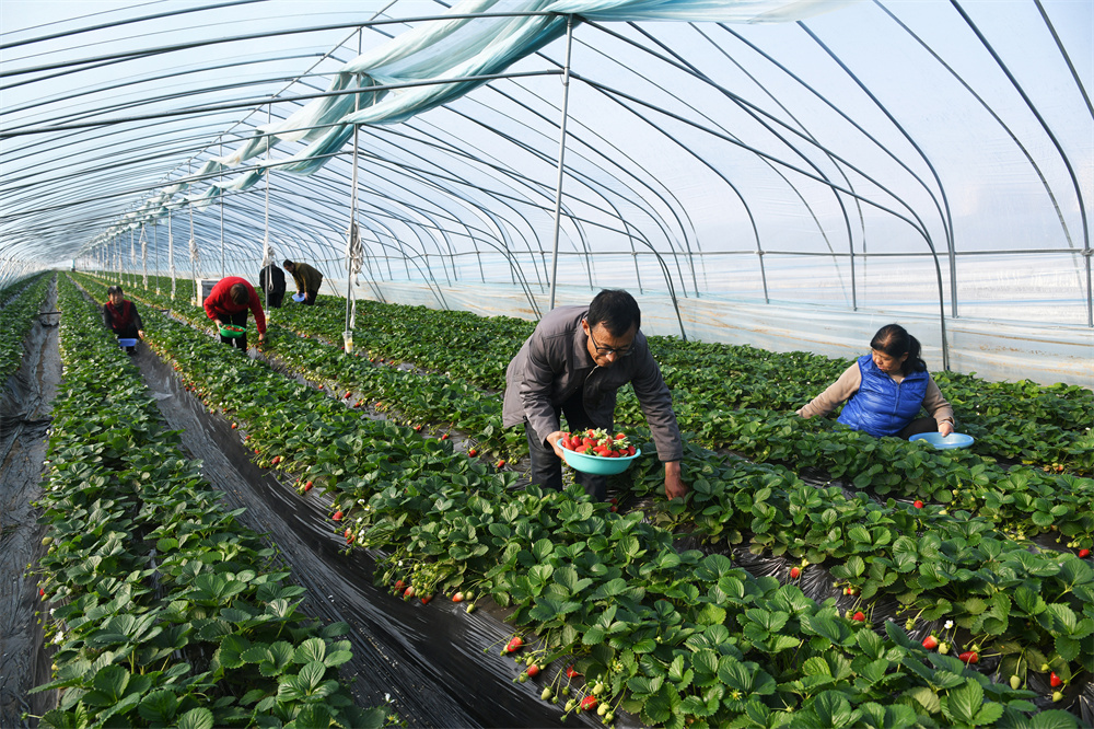 11月15日,聞喜縣一家蔬菜專業(yè)合作社的大棚草莓已上市,吸引游客前來采摘。