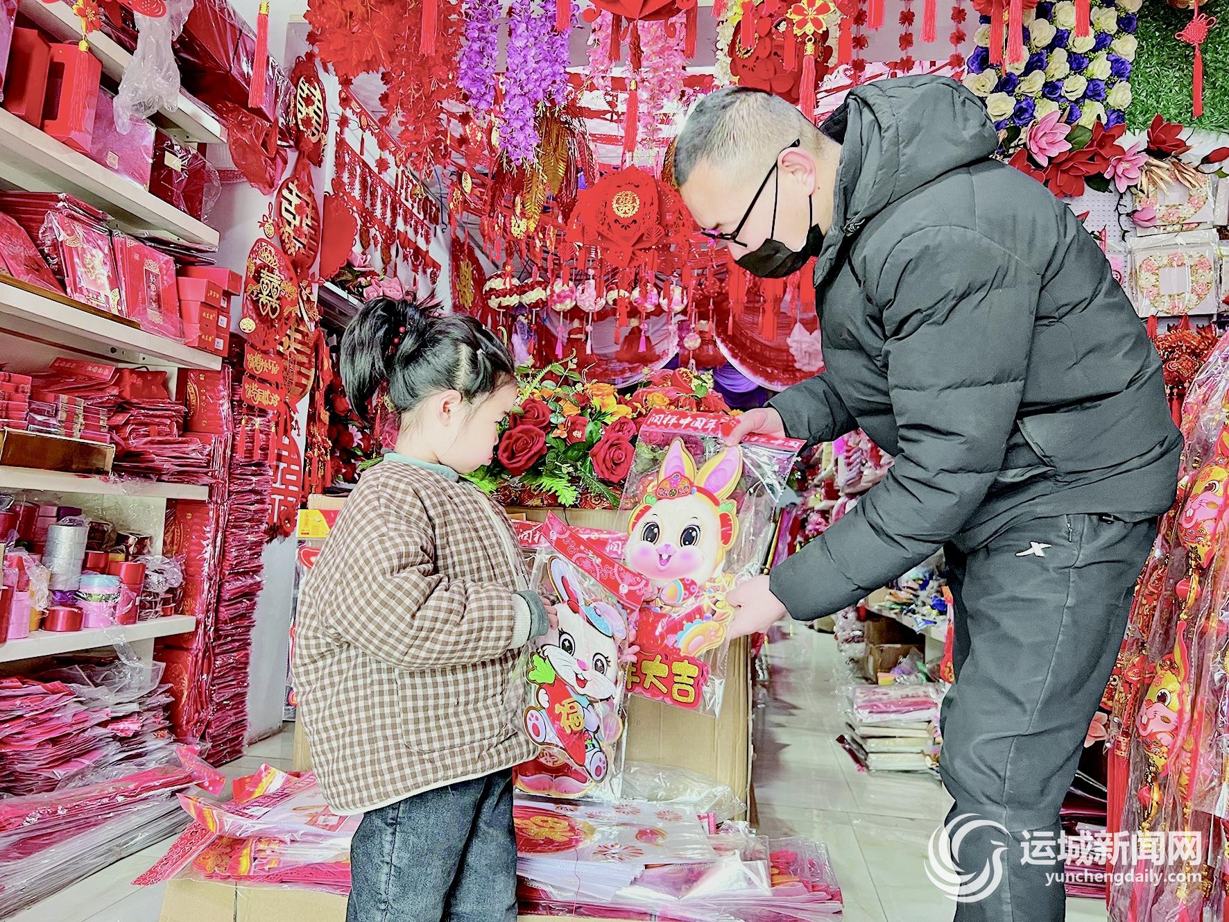 2022年12月30日,父女倆在萬榮縣一門店選購“福兔”飾品。 為了迎接新年的到來,萬榮縣多家飾品店新進(jìn)一批“福兔”飾品,吸引人們前來選購,以寄托對美好生活的向往與憧憬。 特約攝影 解建國 攝