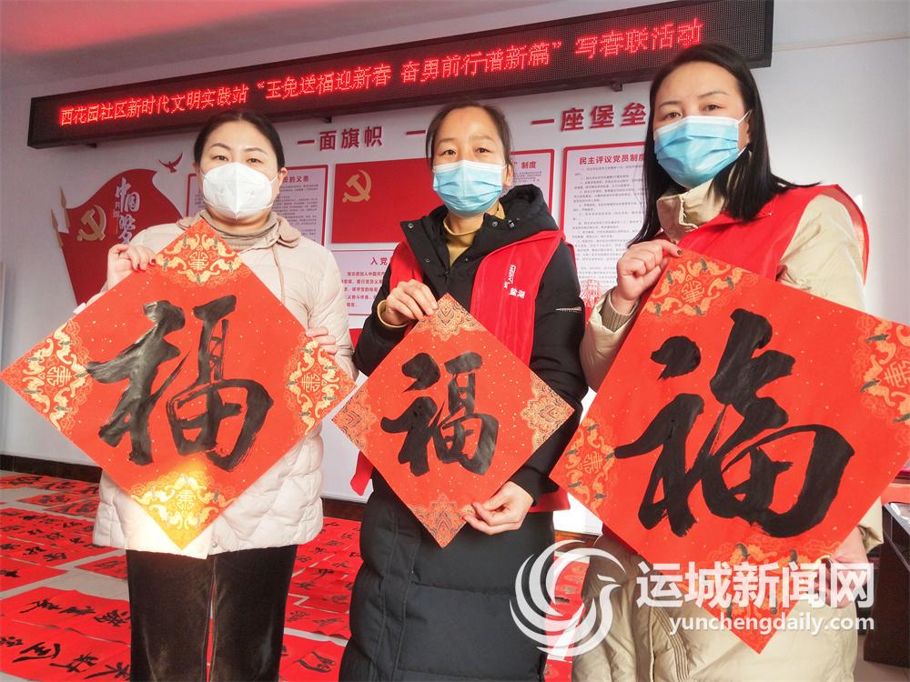 運城晚報訊(記者 崔萌)1月12日,鹽湖區中城街道西花園社區新時代文明實踐站開展了“玉兔送福迎新春,奮勇前行譜新篇”寫春聯活動(上圖)。