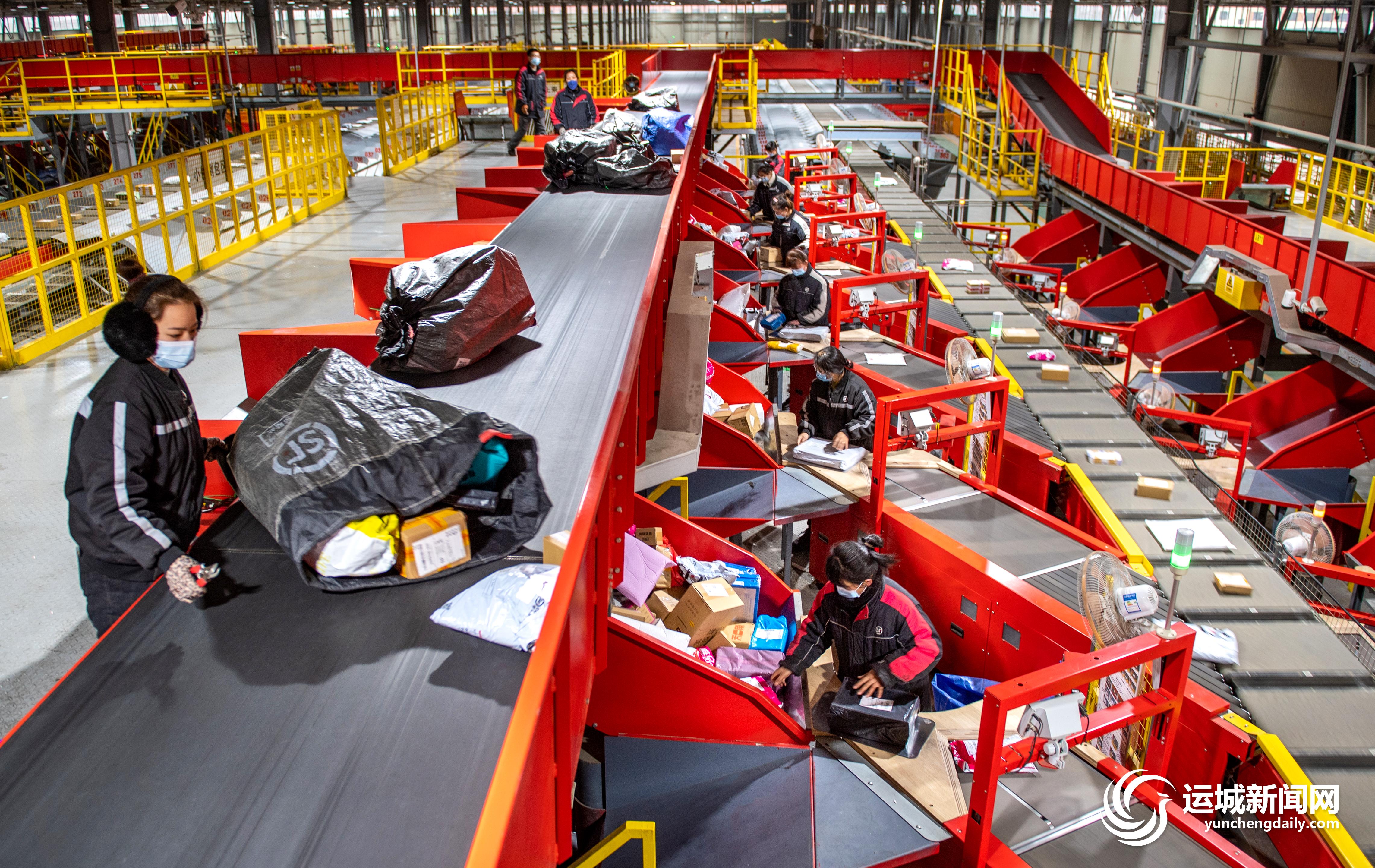 隨著年關臨近,國內各地抵達山西運城的快件也漸漸多了起來。順豐運城楚侯中轉場內,全自動分揀機“馬力全開”,分揀、裝車,一派熱火朝天的景象。