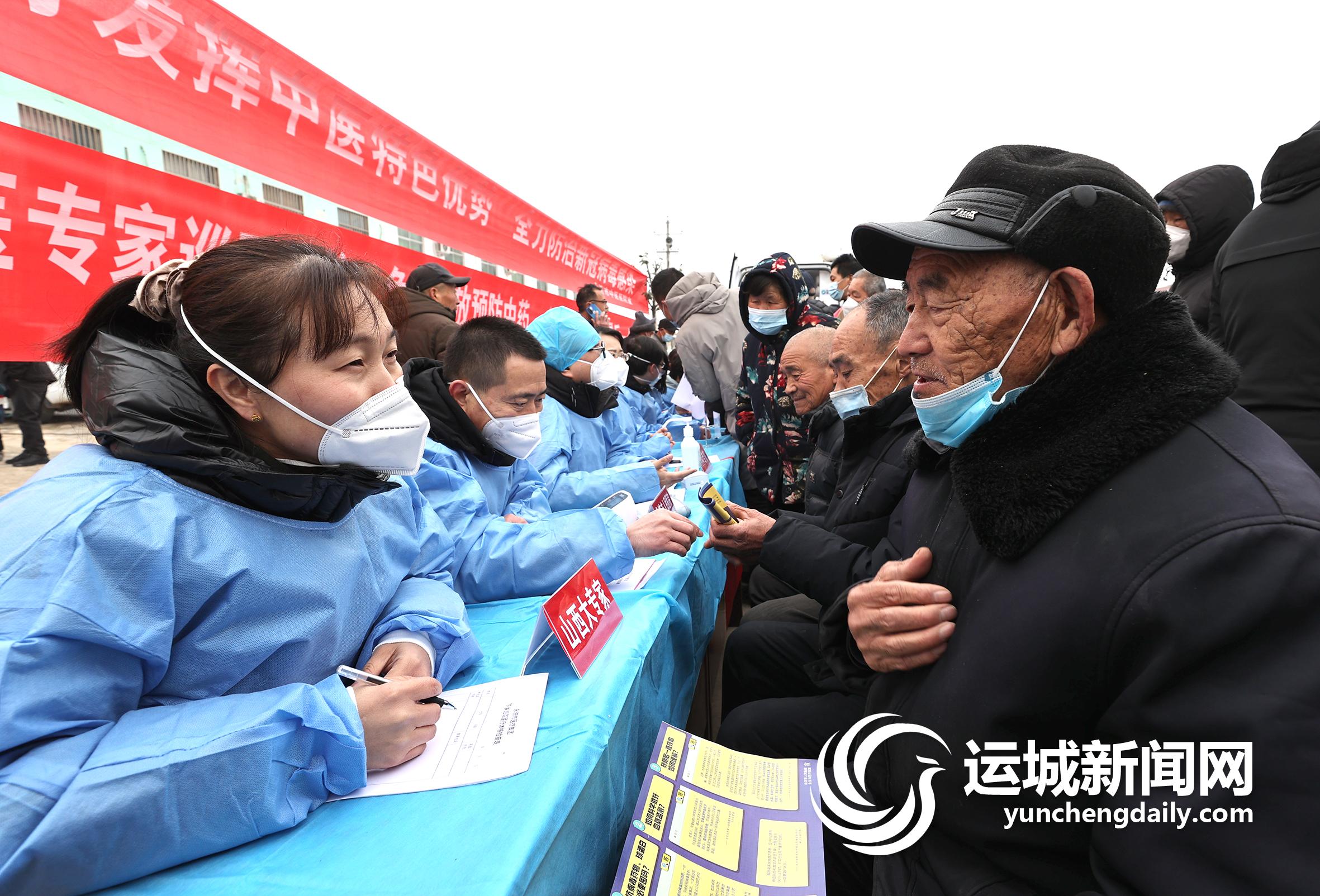 1月20日,山西省針灸醫院醫護人員為永濟市開張鎮黃旗營村大集上趕會的群眾進行義診服務。