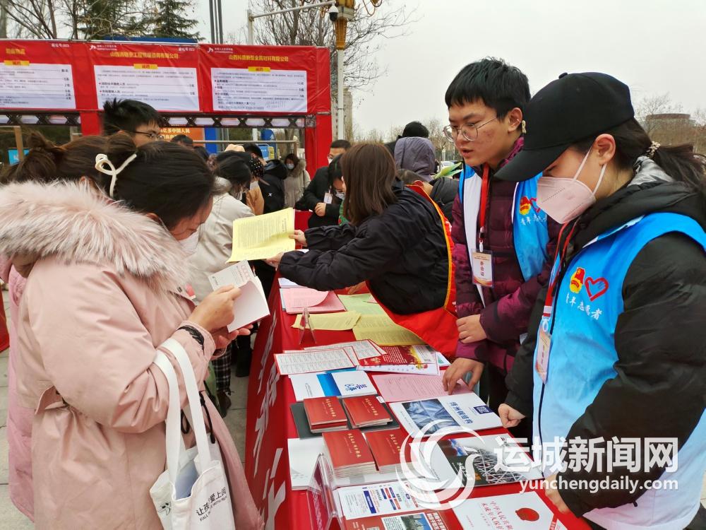 2月2日上午9時,在市體育館廣場上的“春風行動”暨就業援助月人力資源招聘大會現場,由市人社局、市總工會、市婦聯、共青團運城市委等單位組成的政策咨詢臺前十分熱鬧。身著紅馬甲、肩披綬帶的工作人員正忙著為前來咨詢的應聘者答疑解惑。據了解,結合本次新春大型招聘會,各單位帶領專業工作人員組成一支“志愿服務團隊”,在現場為前來應聘的群眾提供免費法律咨詢、普法宣傳等服務。